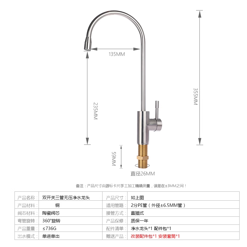 安利净水器水龙头益之源滤芯家用直饮三管无压水管台下转接头配件