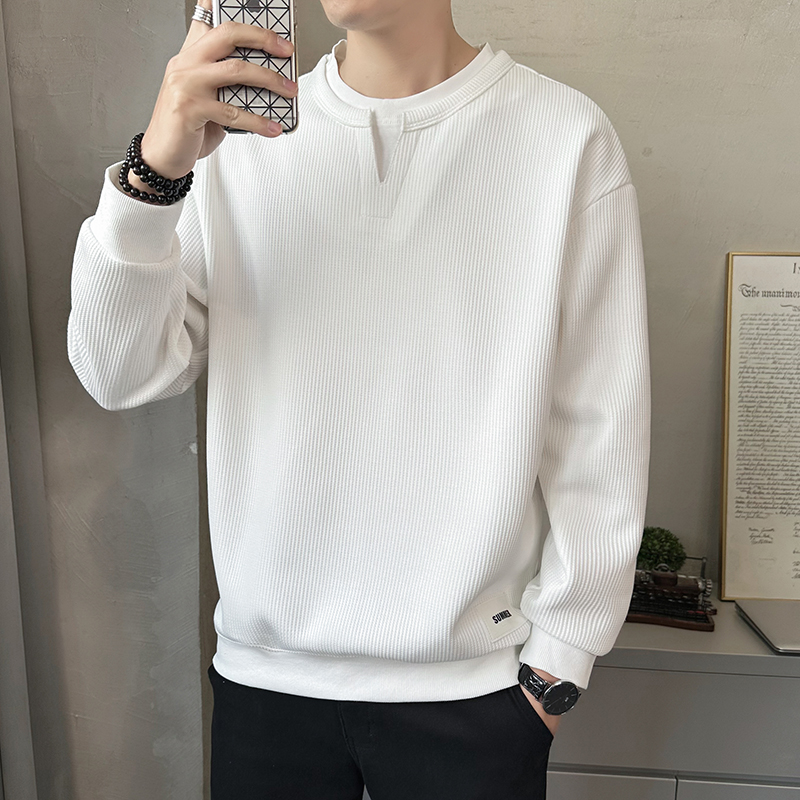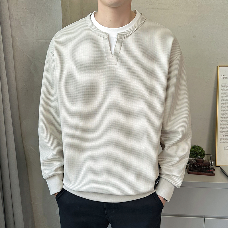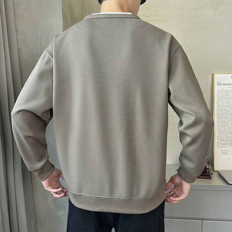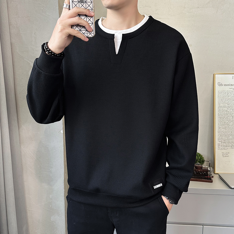 高档卫衣男秋季薄款2025新款潮牌男装V领假两件秋衣棉质长袖T恤男
