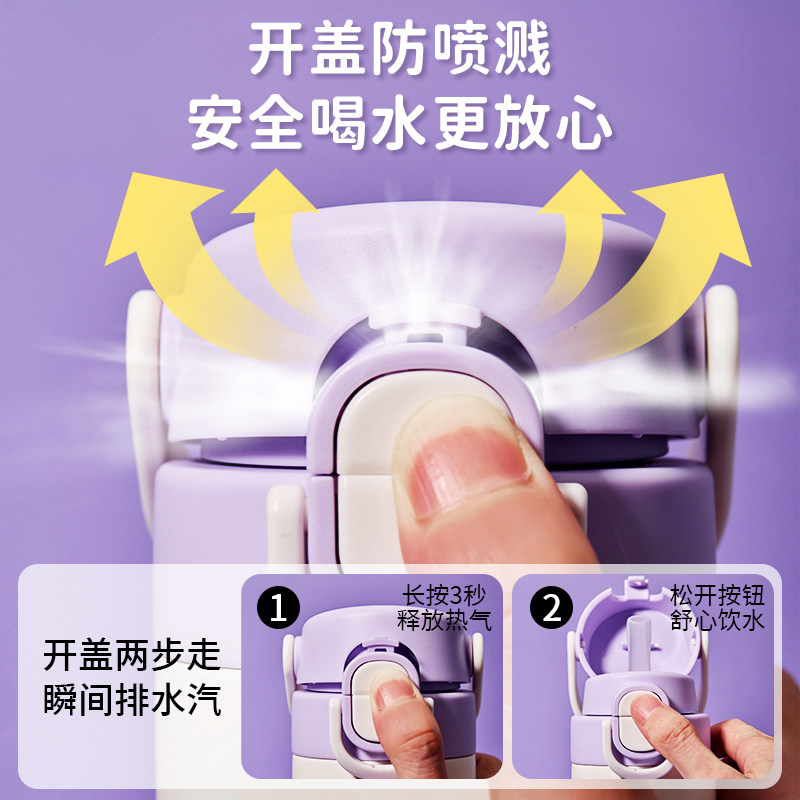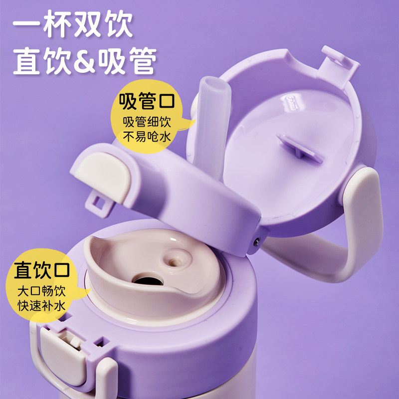 史努比小学生保温杯儿童女孩上学专用吸管水杯316l不锈钢便携双饮