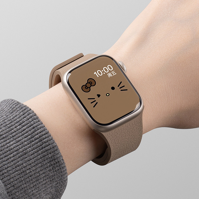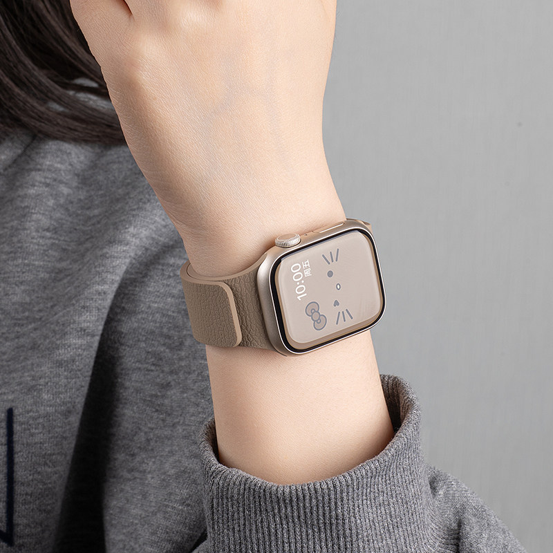 美派适用苹果S10手表带新款iwatchs11荔枝纹表带applewatchs9磁吸S8硅胶S7腕带6女款5运动4高级Ultra3秋季SE3