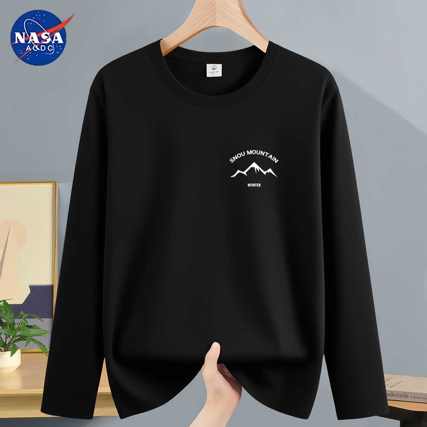 NASA联名重磅纯棉长袖t恤男2025新款白色打底衫宽松青少年内搭T恤