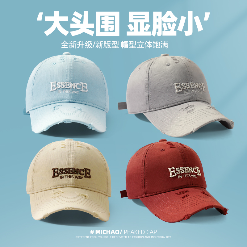 字母简约韩版潮流显脸小鸭舌帽深顶防晒遮阳大头围宽帽檐棒球帽子