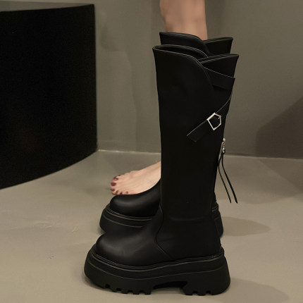 粗跟厚底高筒靴女2025年春秋季新款时尚百搭不过膝靴配裙子骑士靴