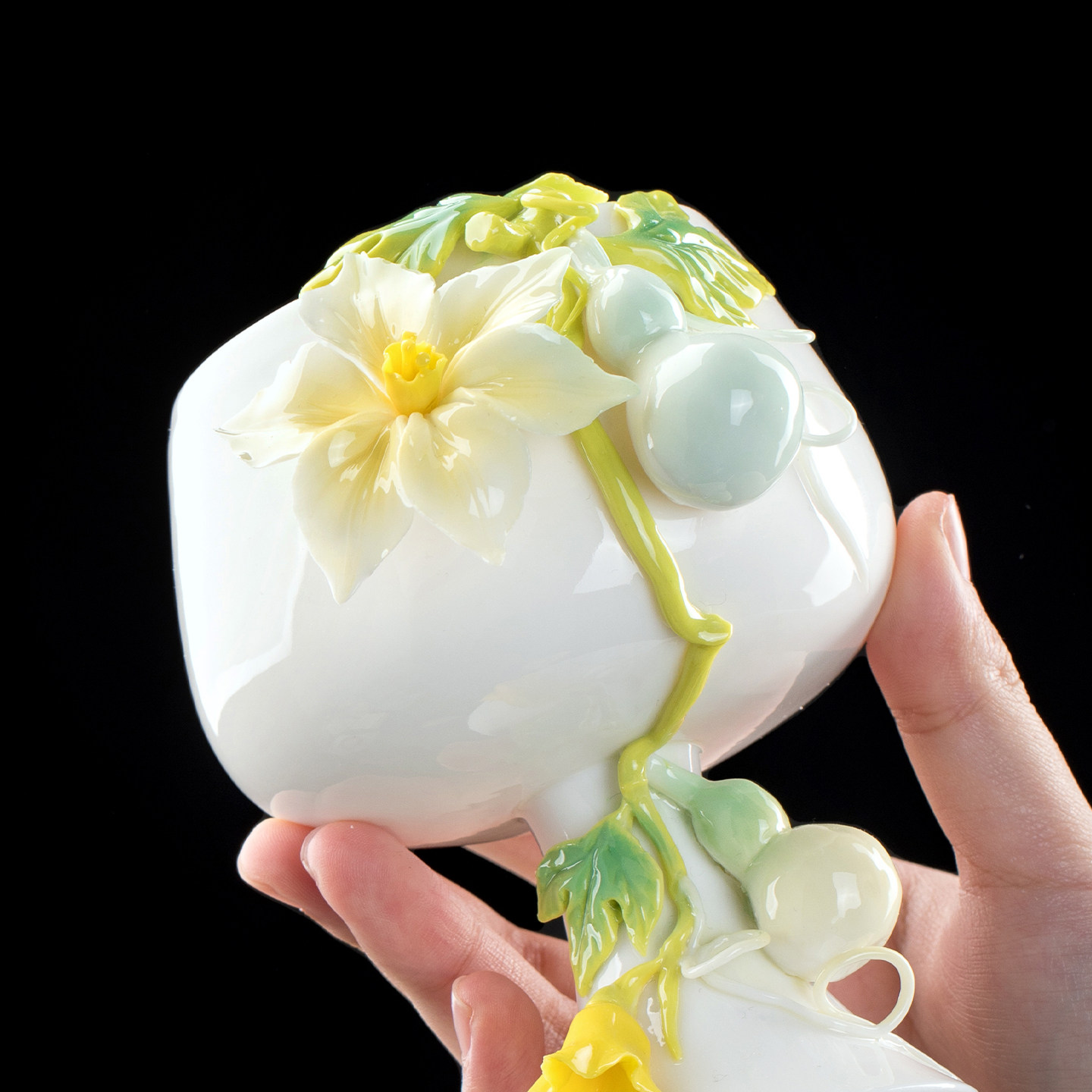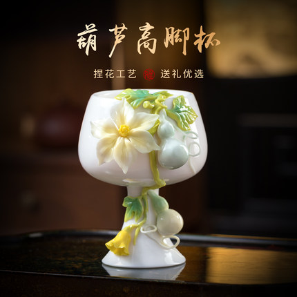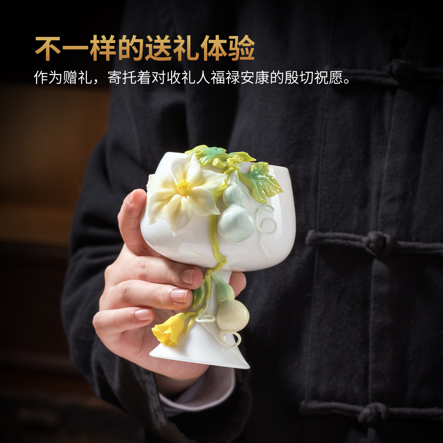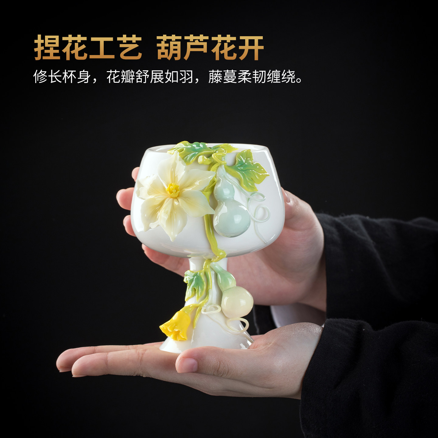葫芦高脚杯|非遗手捏花陶瓷杯子水杯茶杯马克杯女神女生生日礼物