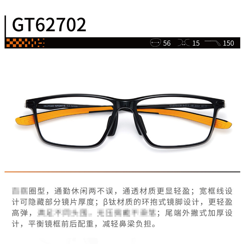 高特运动近视眼镜框男女可配高度数镜片56骑行钛镜架全框GT62702