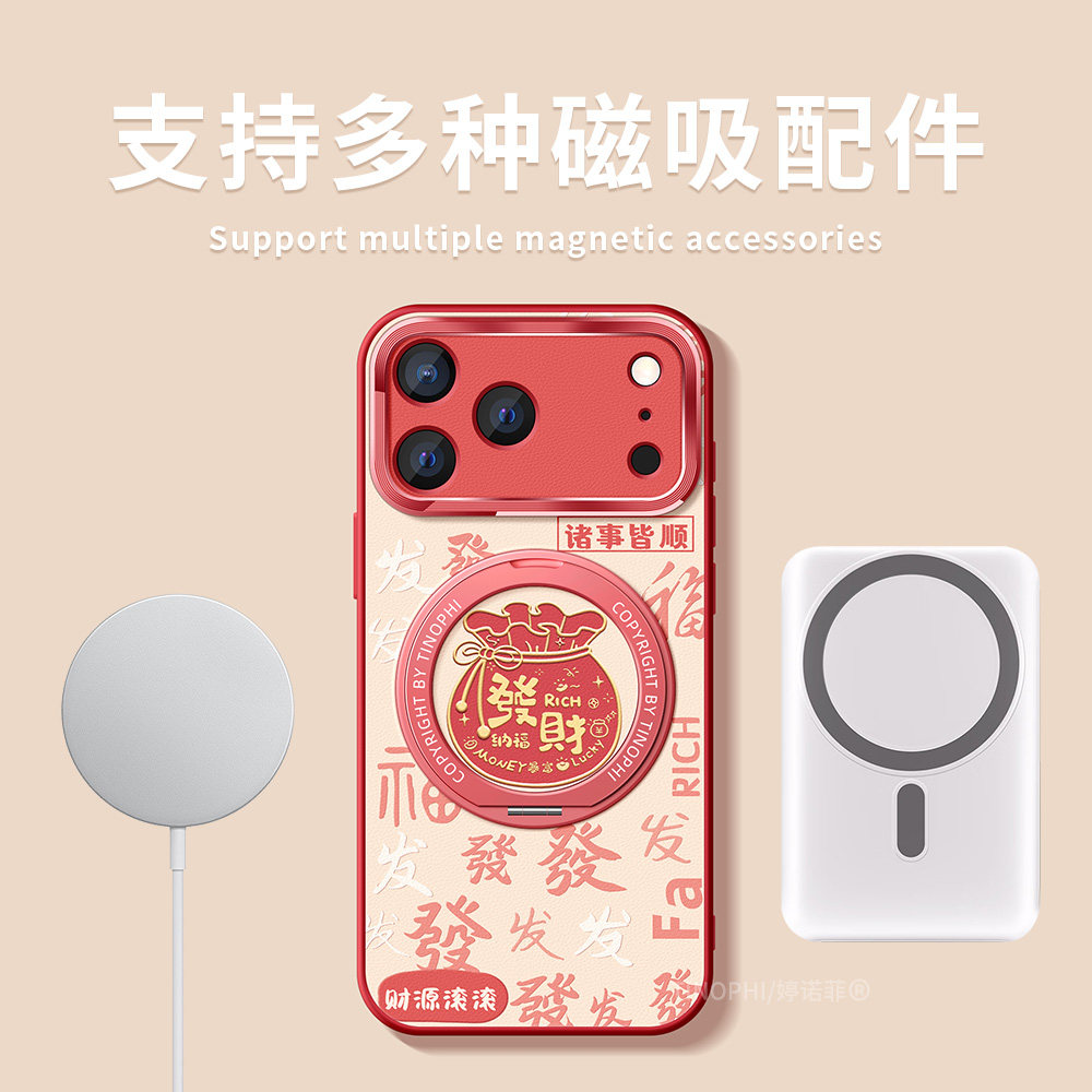 适用苹果17promax手机壳新款iphone16保护套防摔magsafe磁吸带支架15pro金属圈全包发财14plus股市大涨软外壳