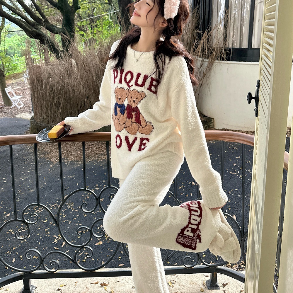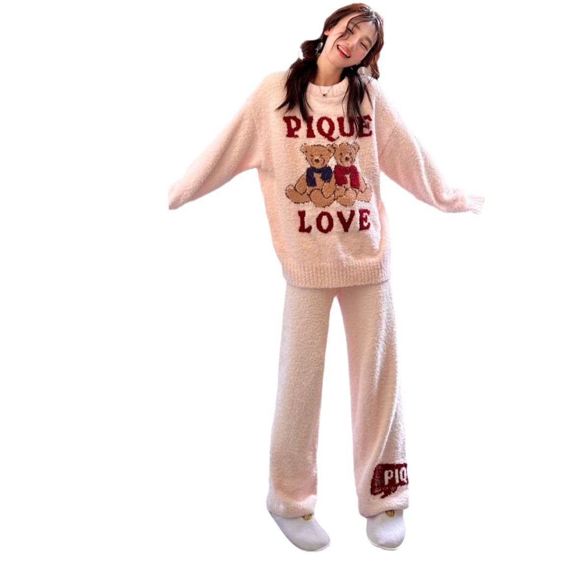 秋冬gp可爱小熊圣诞红色情侣软绵绵女士家居服睡衣女半边绒套装