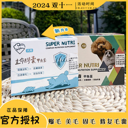 现货生命胶囊狗猫爆毛用术后皮肤病毛囊修复美毛孕犬下奶鳖蛋丸