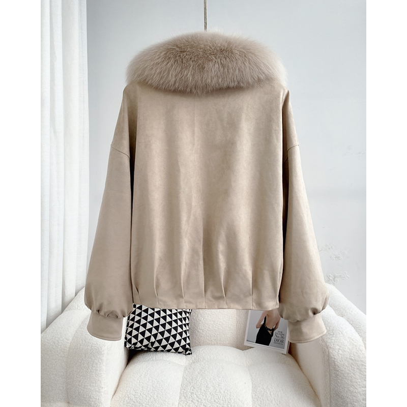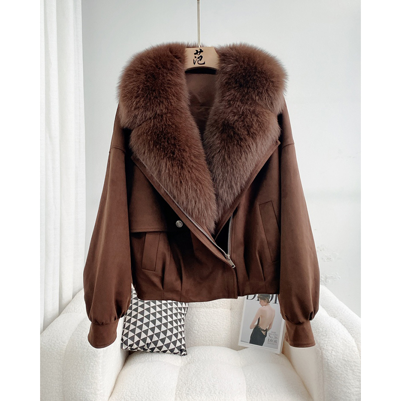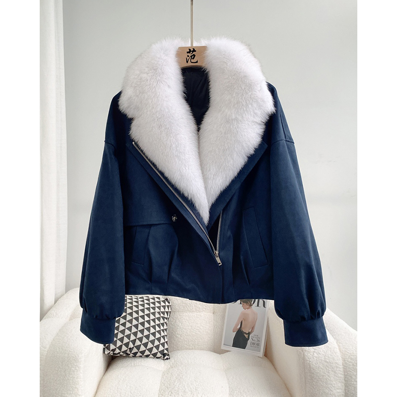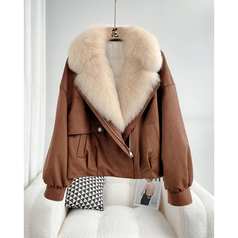 进口狐狸毛皮草外套女短款2025冬新大毛领鹅绒服大衣机车B1961