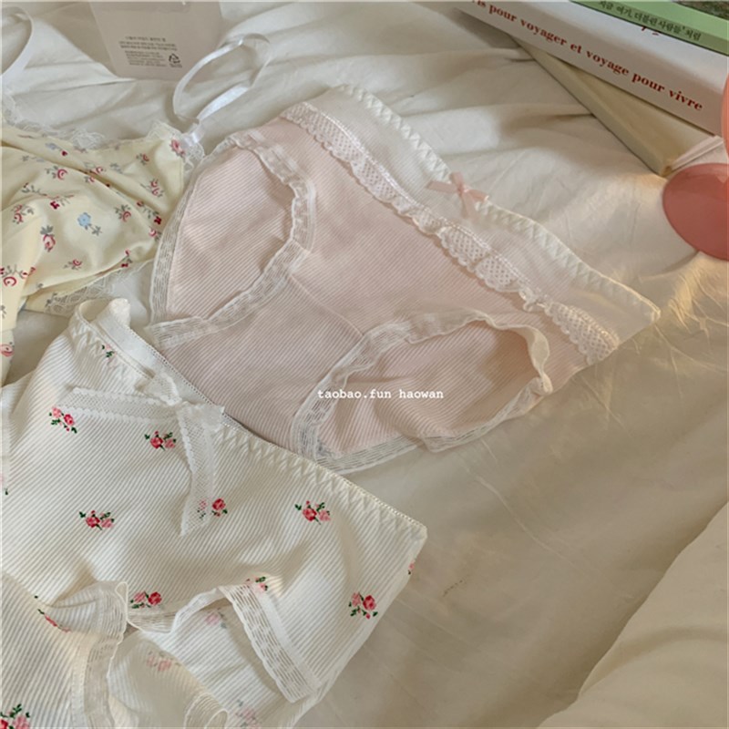 3条装~学生党的爱 粉色系棉质小碎花内裤甜美女生三角裤蝴蝶结