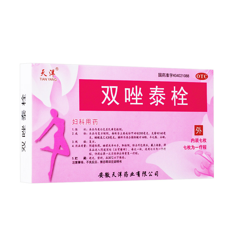 【天洋】双唑泰栓200mg160mg8mg*7粒/盒阴道炎真菌外阴瘙痒盆腔炎细菌