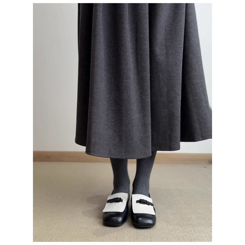 经典配色~真皮方头皮带扣豆豆鞋拼色英伦风乐福鞋女新款平底单鞋