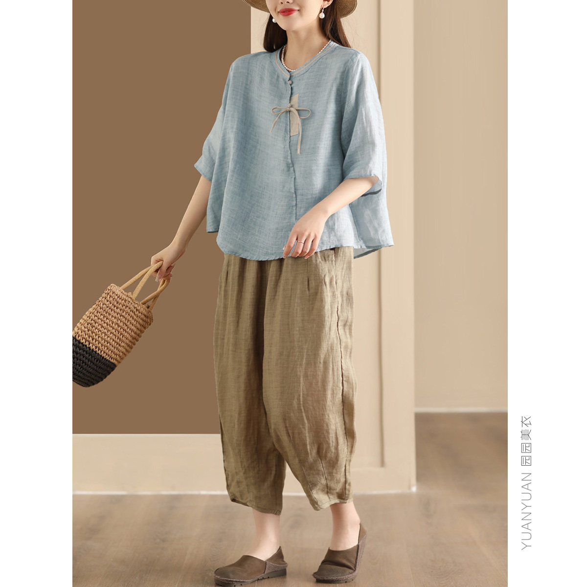 宽松复古苎麻盘扣衬衫