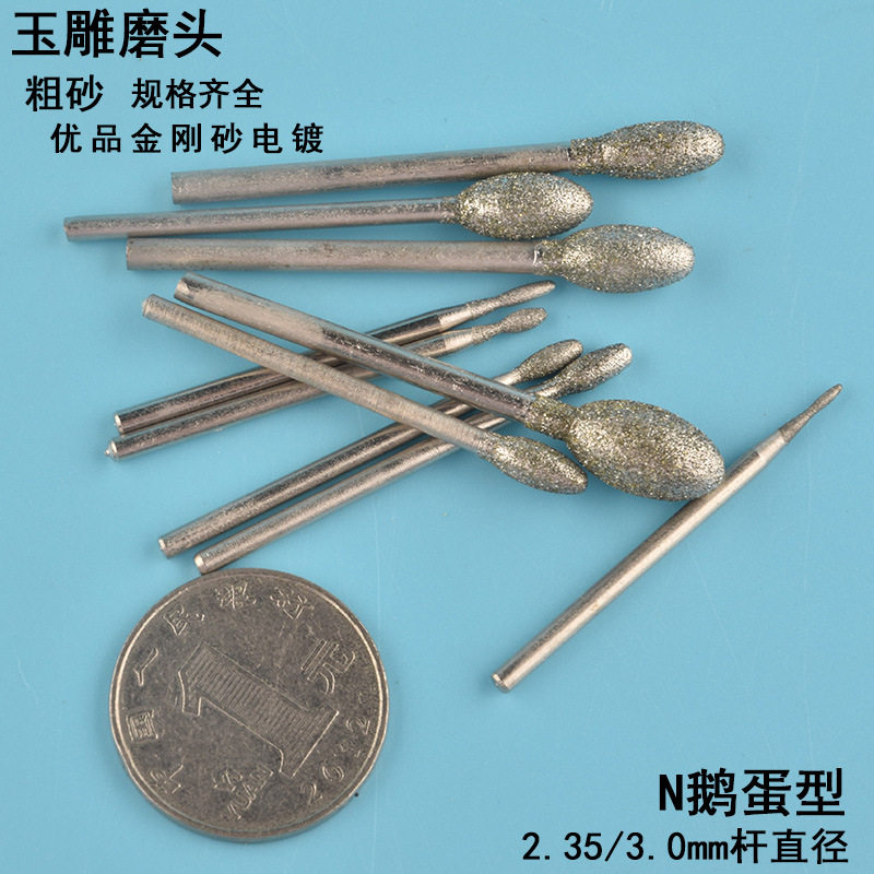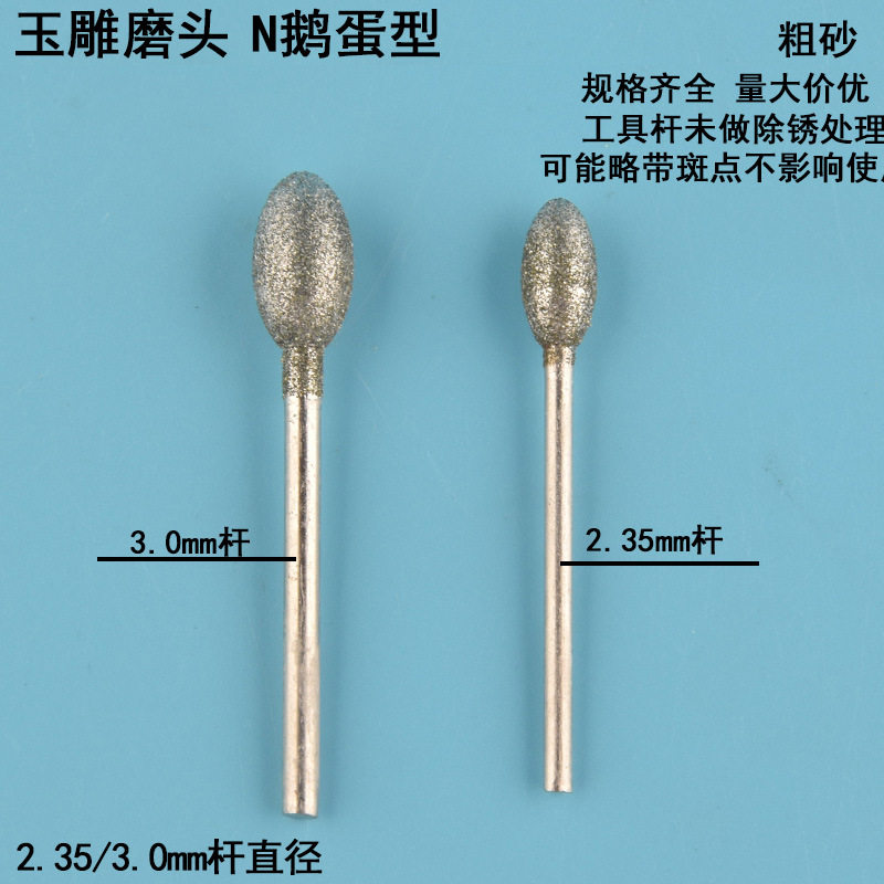 玉雕工具鹅蛋型玉雕刻原石开窗2.35磨针钻头金刚砂打磨电动抛光