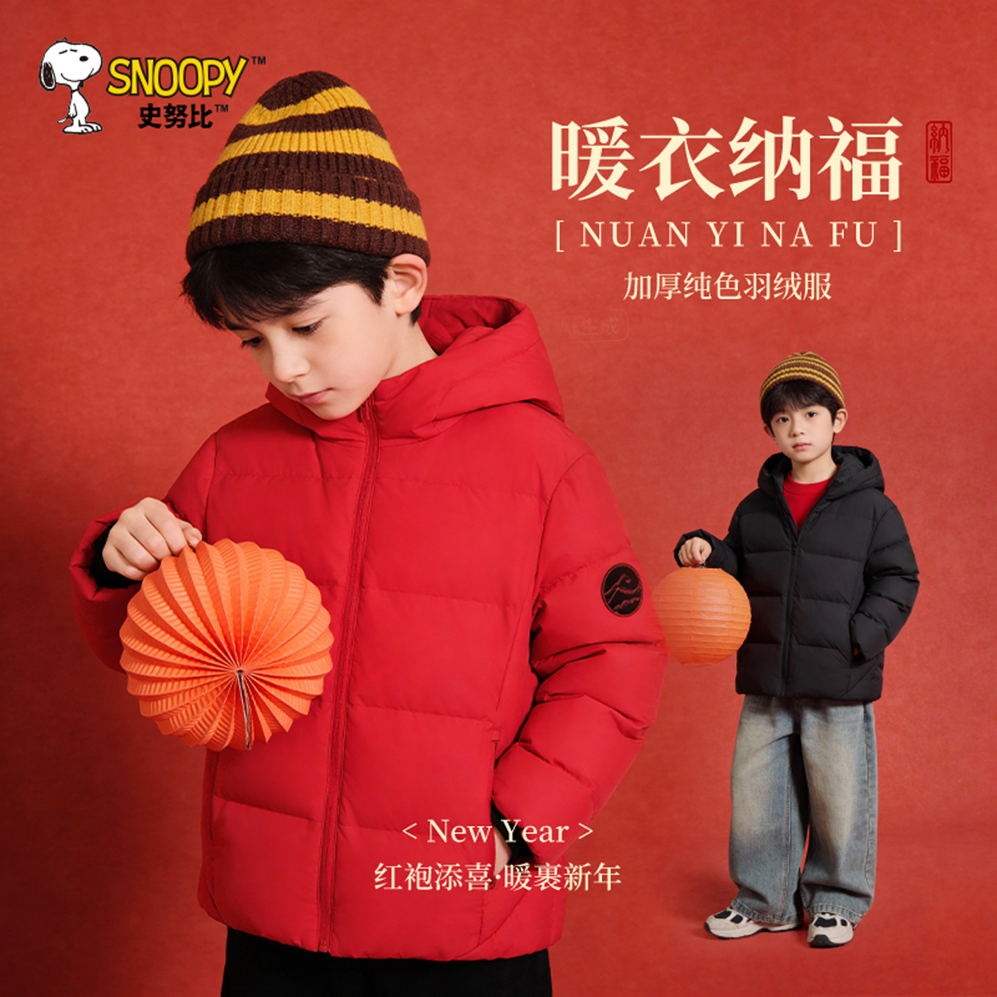 史努比童装儿童红色羽绒服男童冬装本命年上衣男大童新年冬季外套
