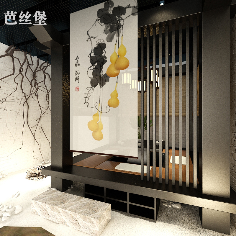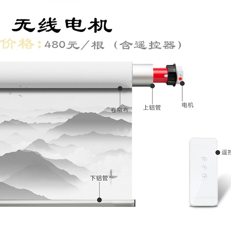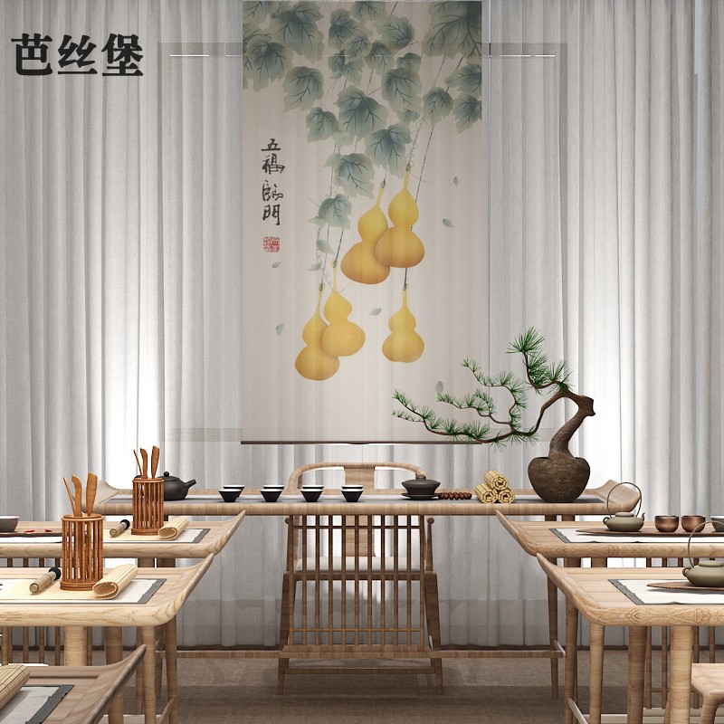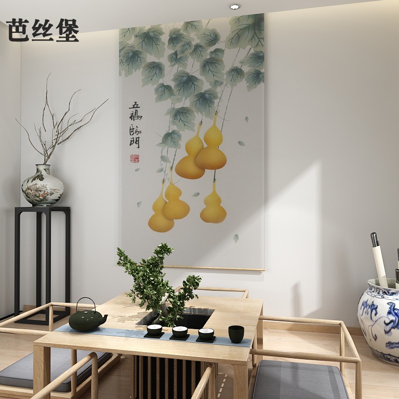 中式简约客厅玄关茶室升降卷帘窗帘全遮光家用餐厅画布艺五福临门