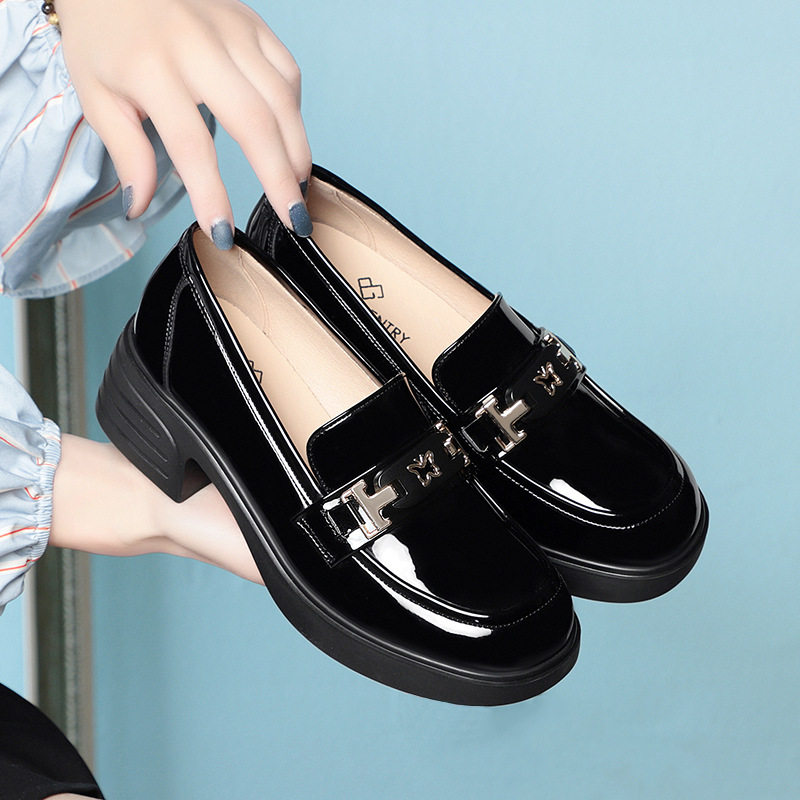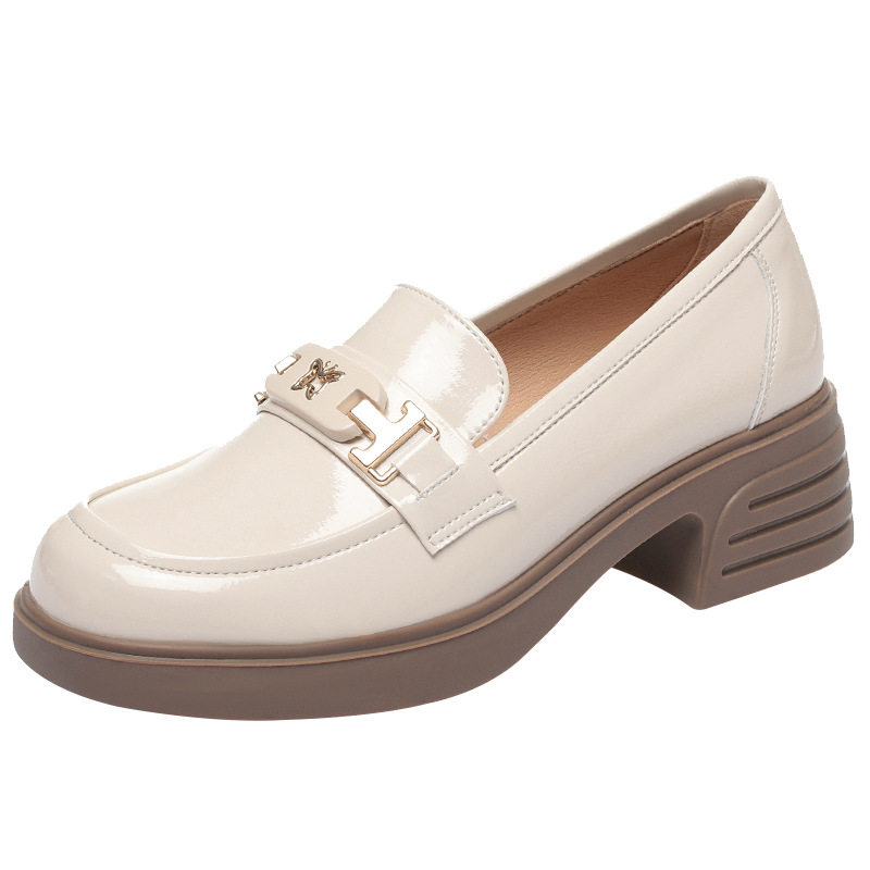 米白乐福鞋女春秋2024新款亮皮女鞋软底女士小皮鞋英伦风一件代发