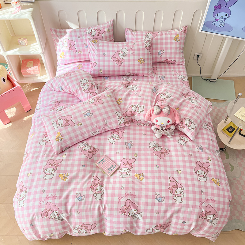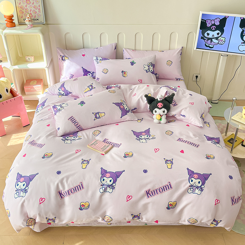 三丽鸥库洛米床笠四件套纯棉床上儿童女孩床品全棉被套单人三件套