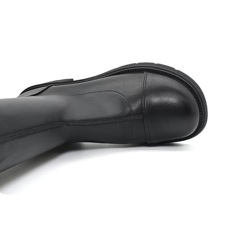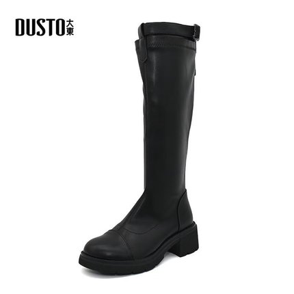大东骑士靴女2024冬季新款时尚休闲中跟粗跟圆头舒适加绒中筒长靴