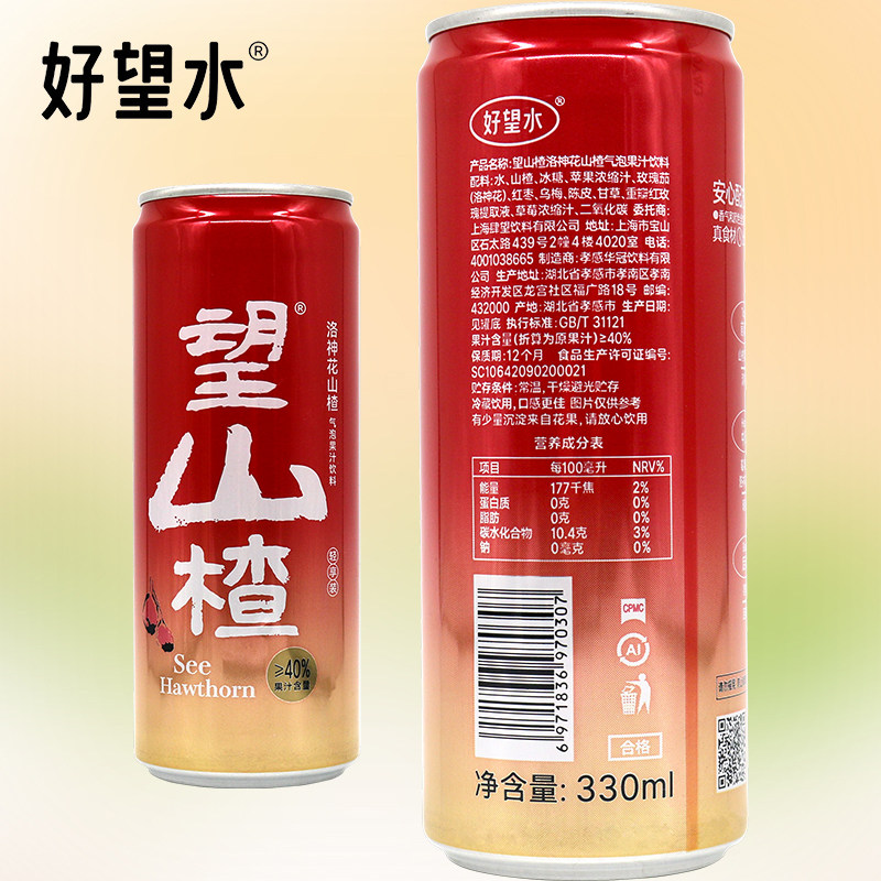好望水望山楂330ml*6罐洛神花山楂果汁气泡水山楂汁听装汽水
