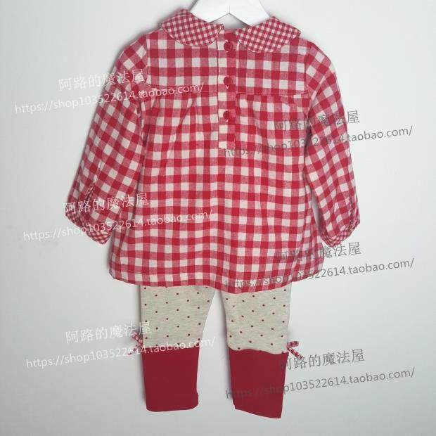 特价包邮-原-韩版春秋女童红色格子长袖衬衫宝宝打底裤长裤套装