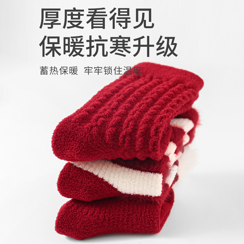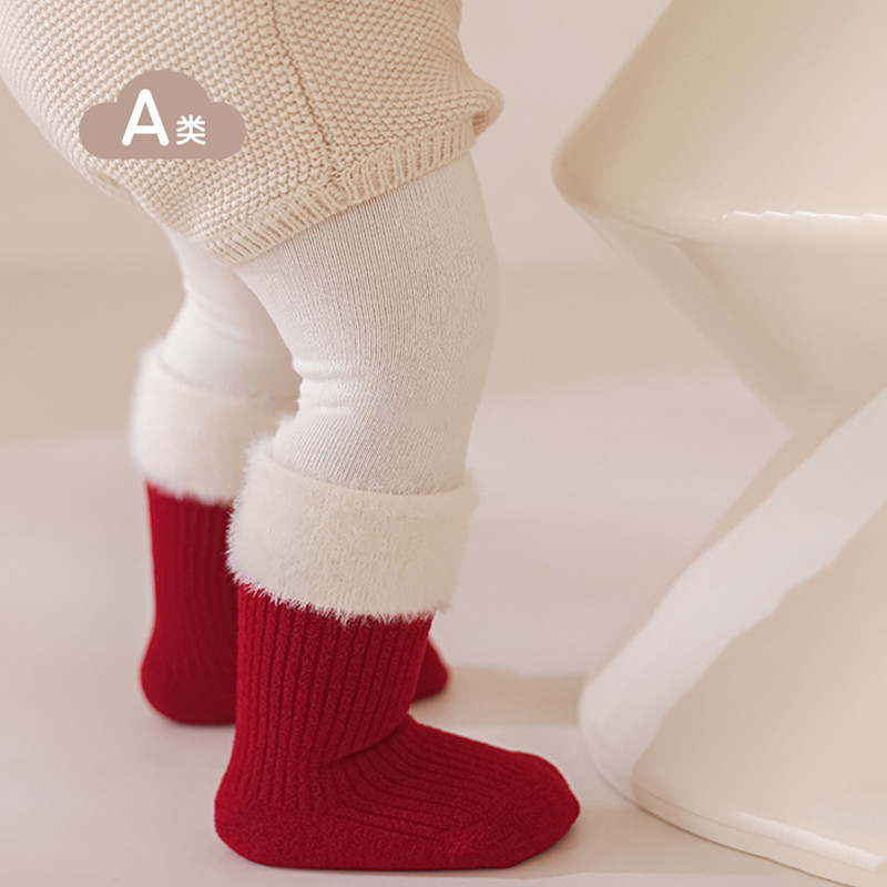 新生婴儿红袜子加厚喜庆新年袜小宝宝百搭洋气中筒袜秋冬保暖袜子