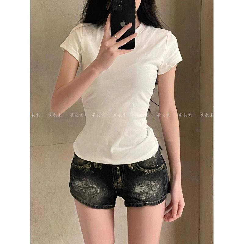 美式复古设计感烫金牛仔裤子女bf慵懒风辣妹千禧y2k破洞包臀短裤
