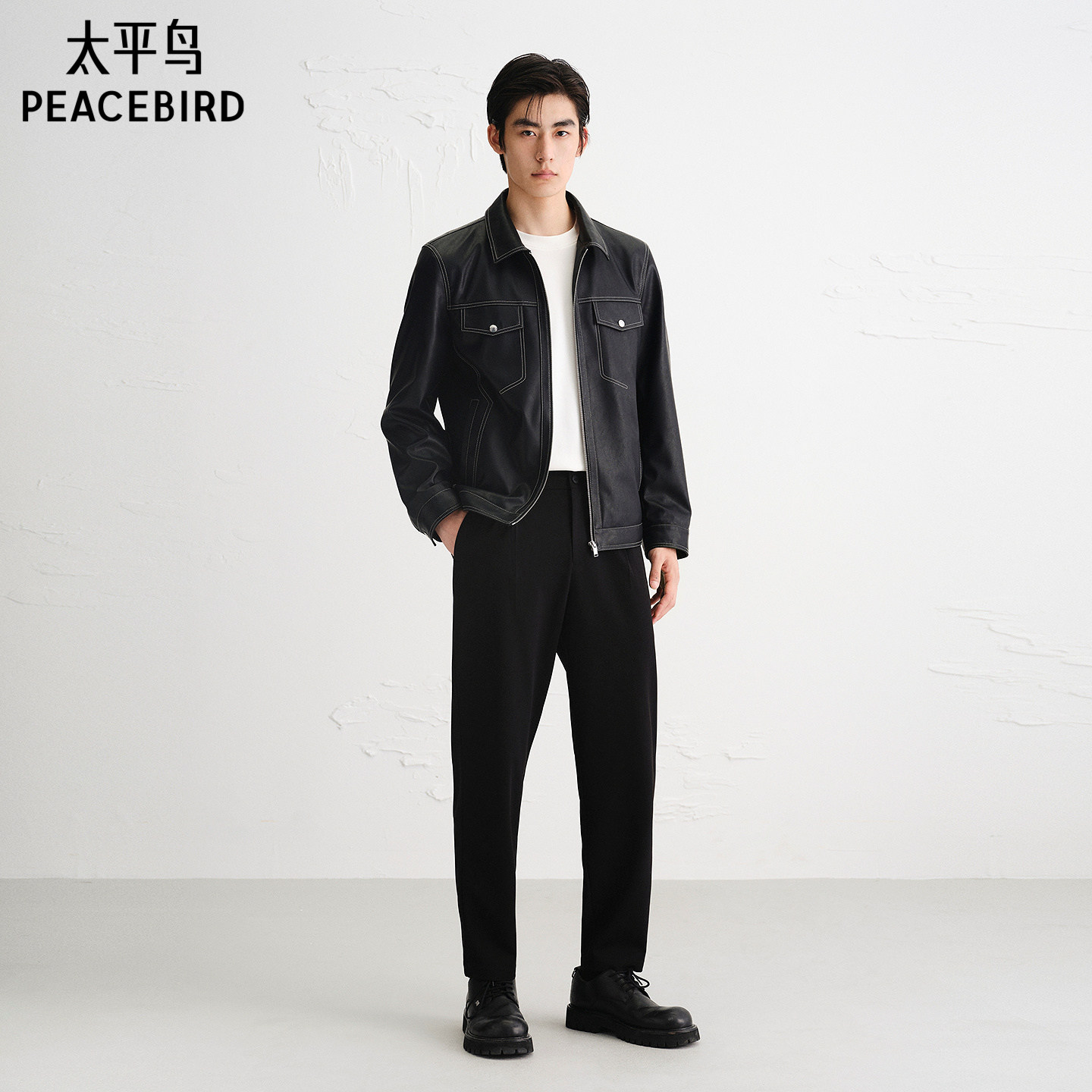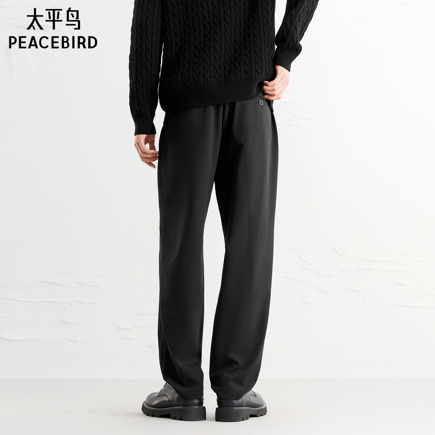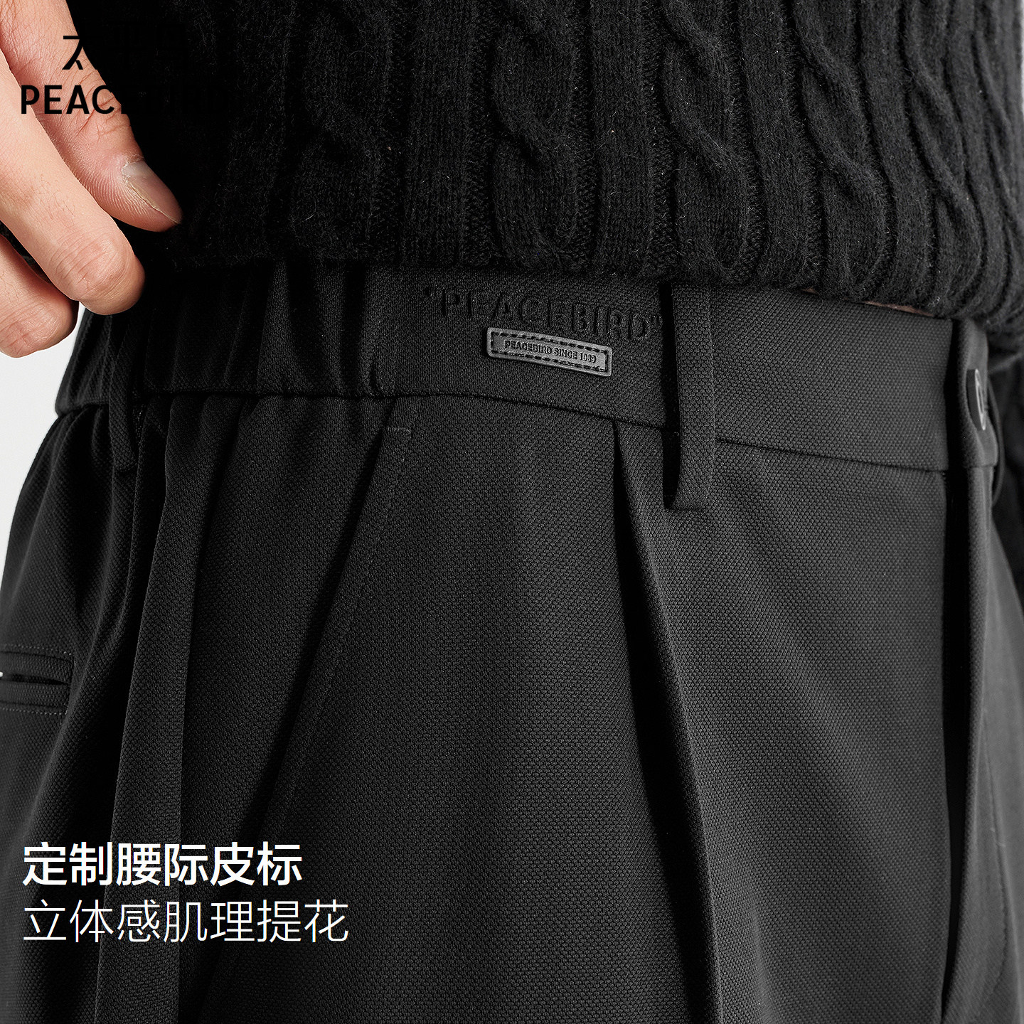 太平鸟男装休闲裤秋季新款立体提花黑色西装裤质感皮标通勤长裤K