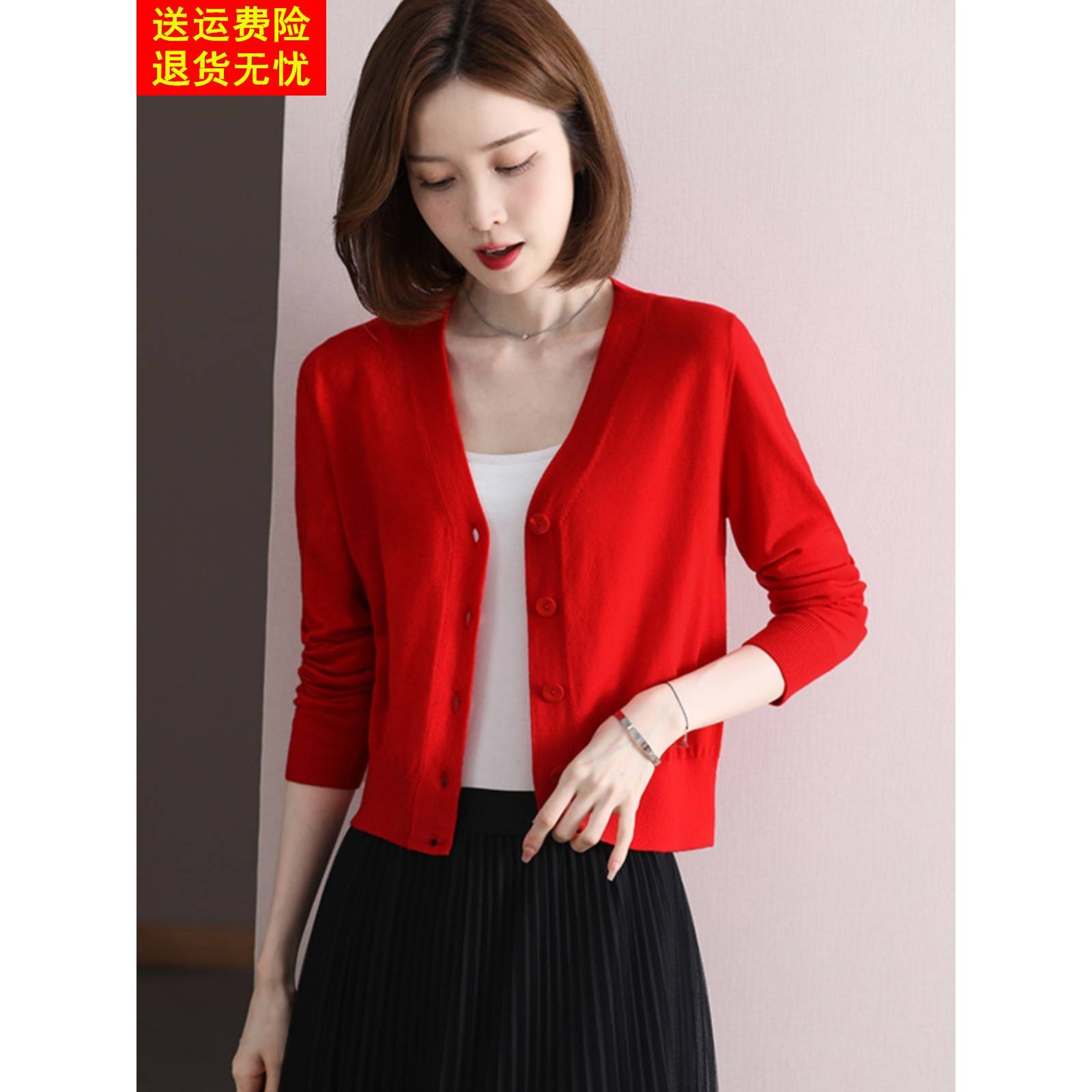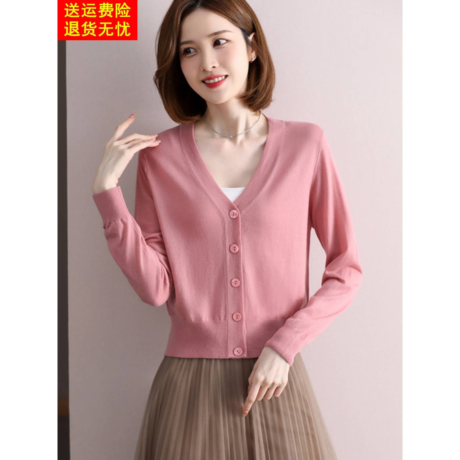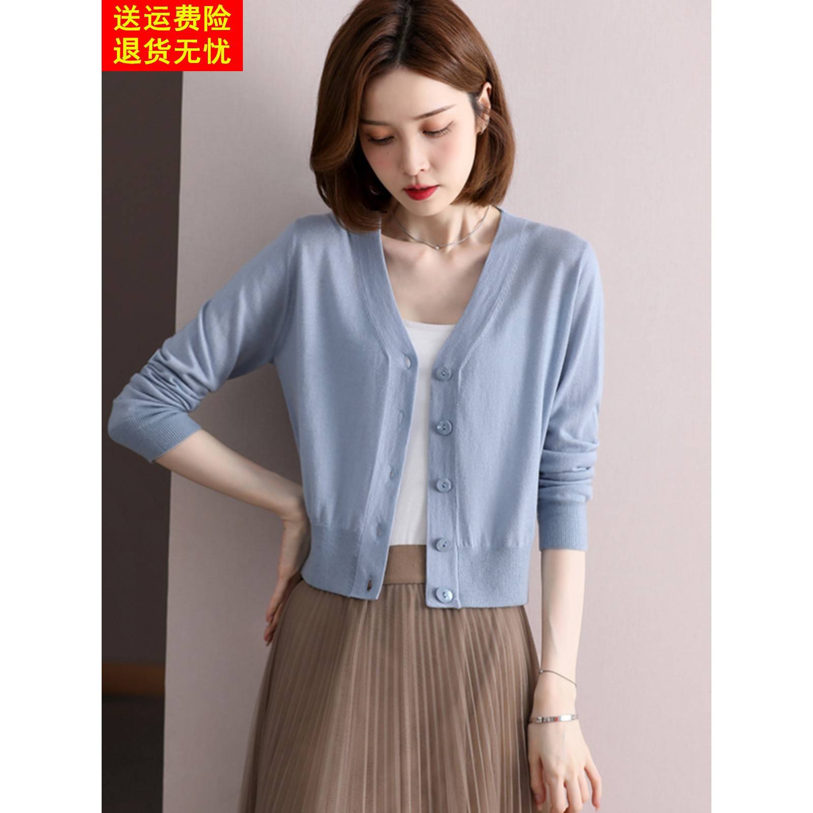 春秋新款羊毛开衫薄款女短款小个子外搭配裙子外套黑色针织衫上衣