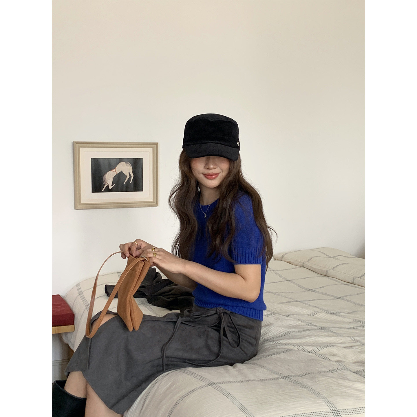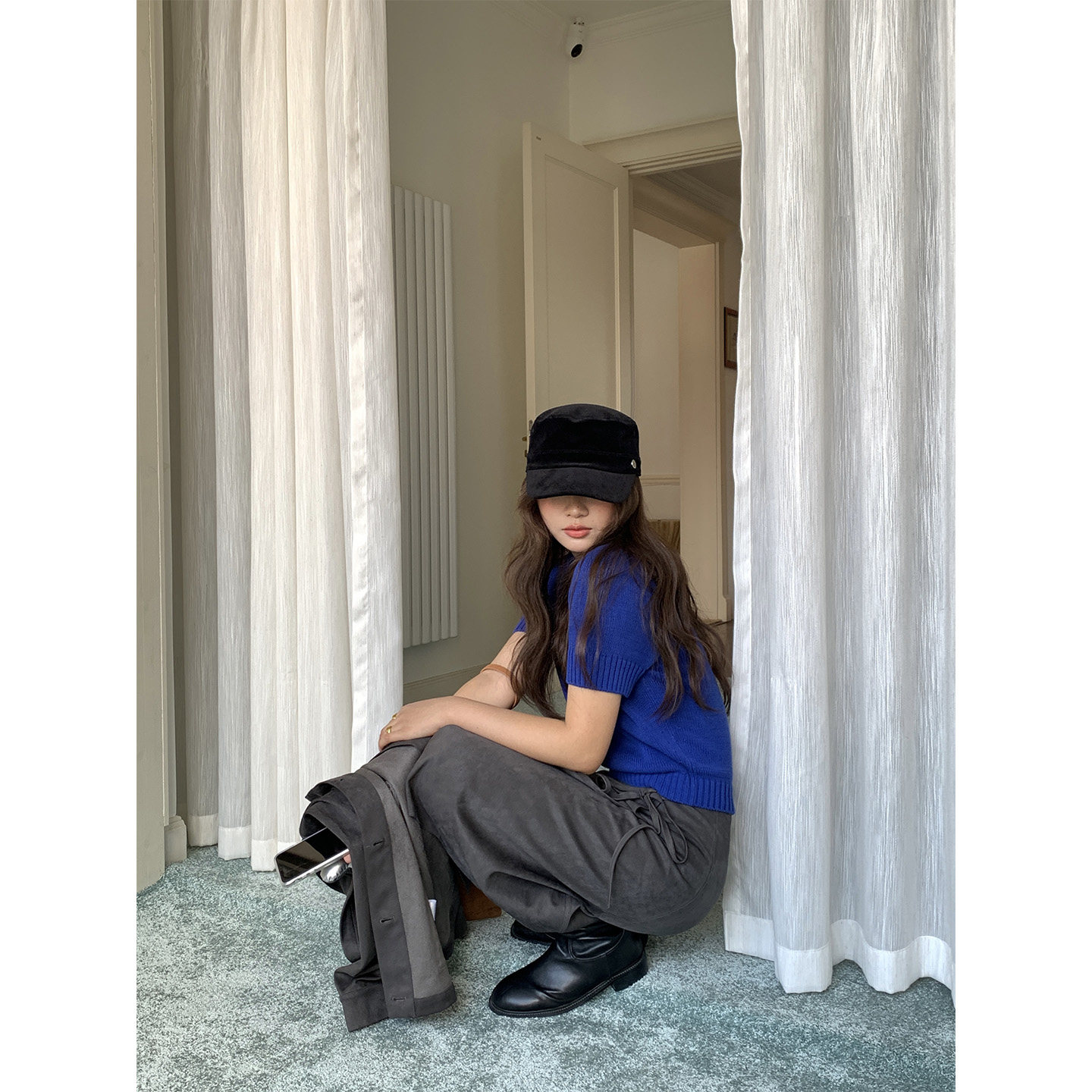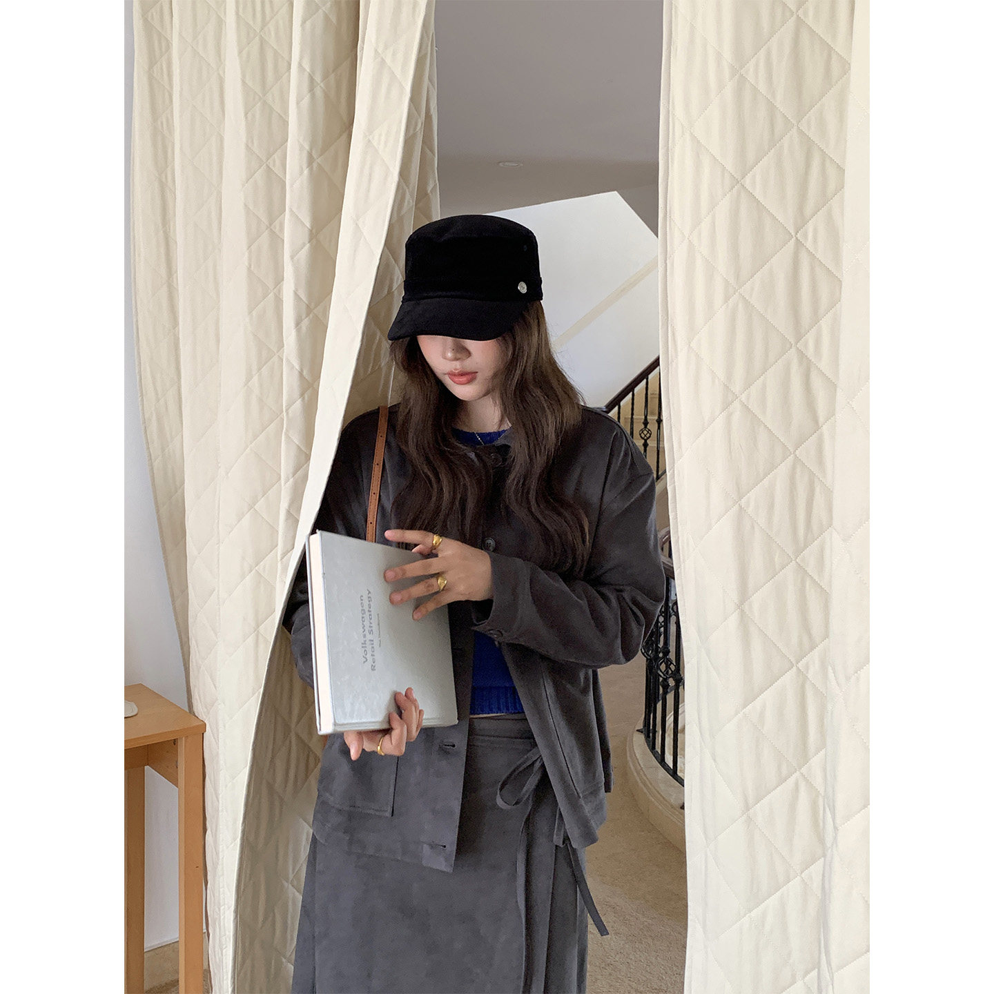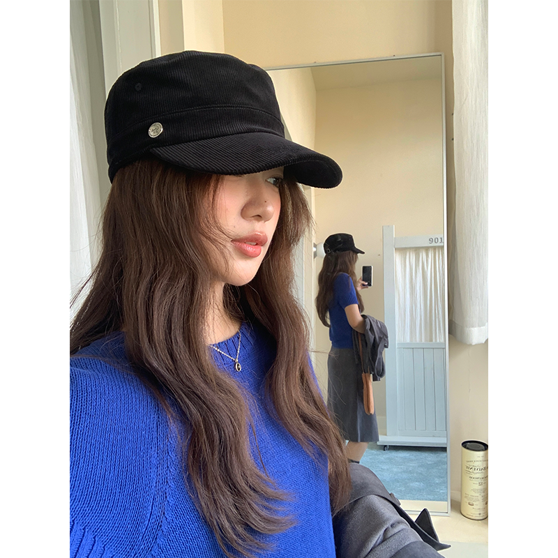 定制款~黑色灯芯绒报童帽女2026新款秋冬平顶马术帽百搭鸭舌帽子