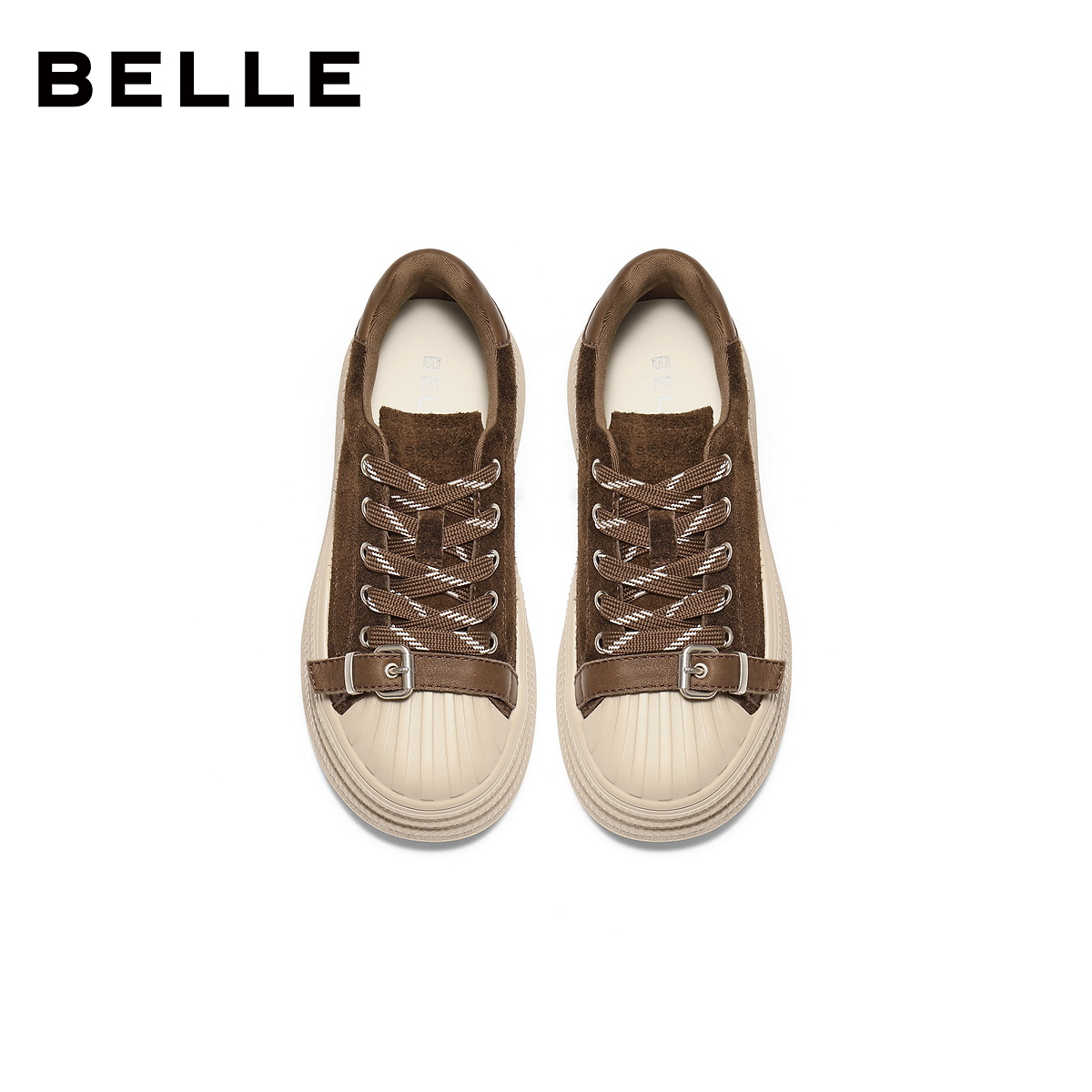 百丽厚底增高板鞋秋冬女款真皮绒面贝壳头休闲饼干鞋B2932CM5