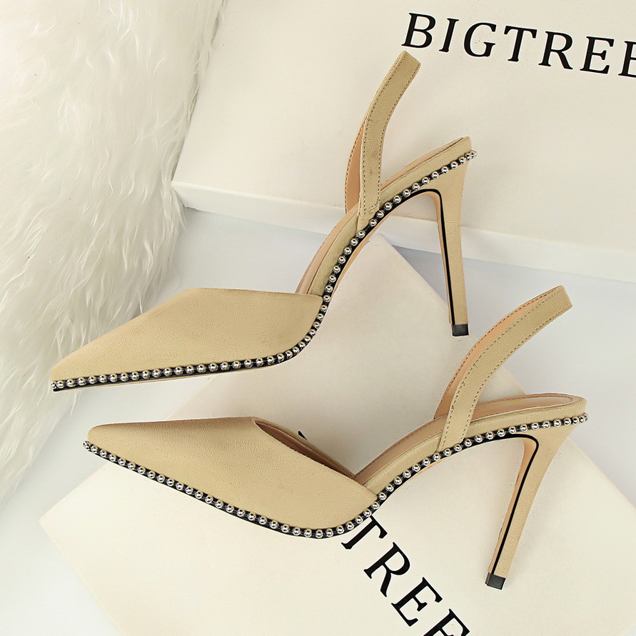 尖头高跟鞋包头少女凉鞋铆钉细跟