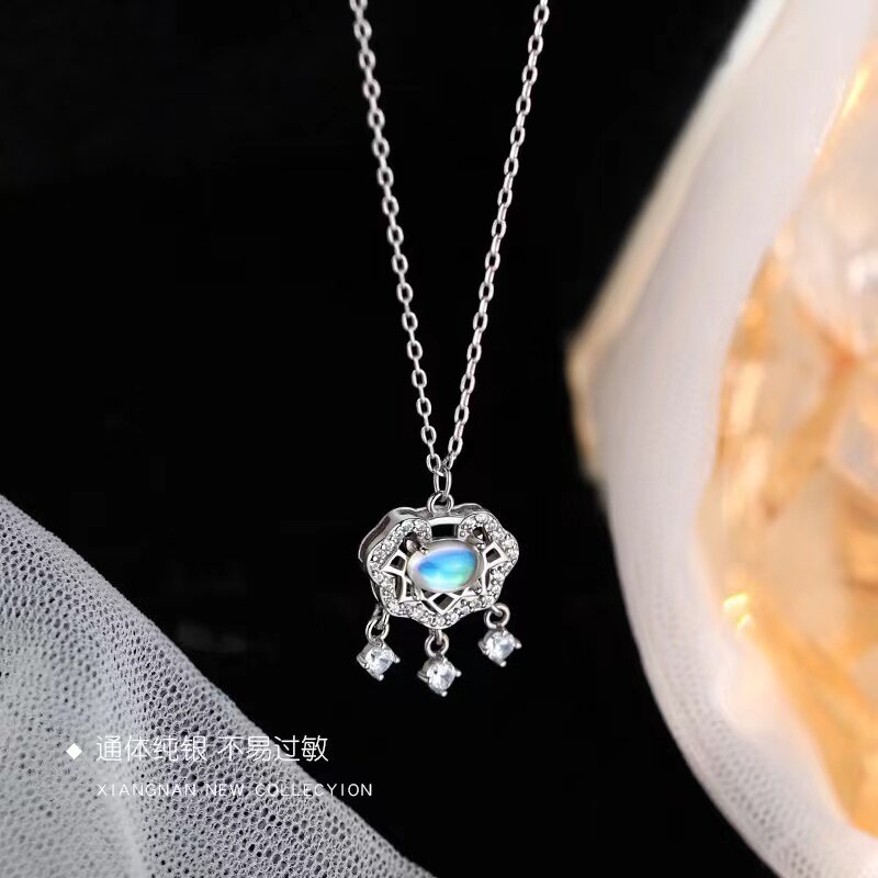 s925纯银长命锁项链2023年新款爆款女小众轻奢平安锁骨链
