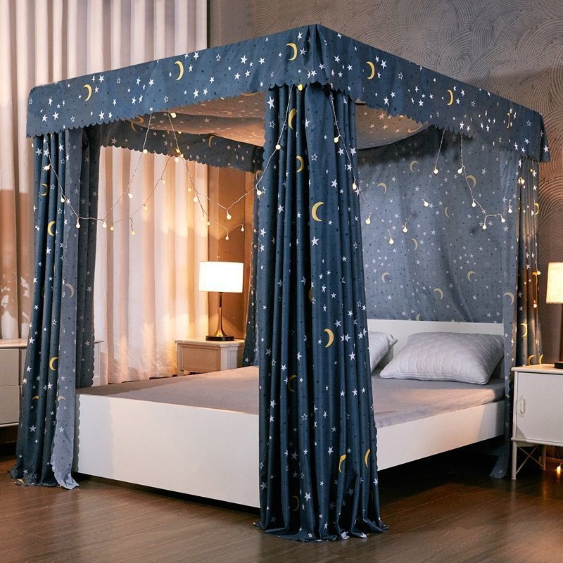 物理落地床帘蚊帐一体式家用卧室遮光带支架防尘防风加厚保暖床幔