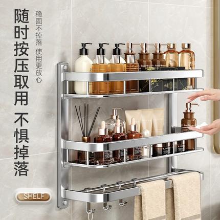 置物架免打孔卫浴卫生间毛巾架壁挂不锈钢室厕所收纳架一体洗澡间