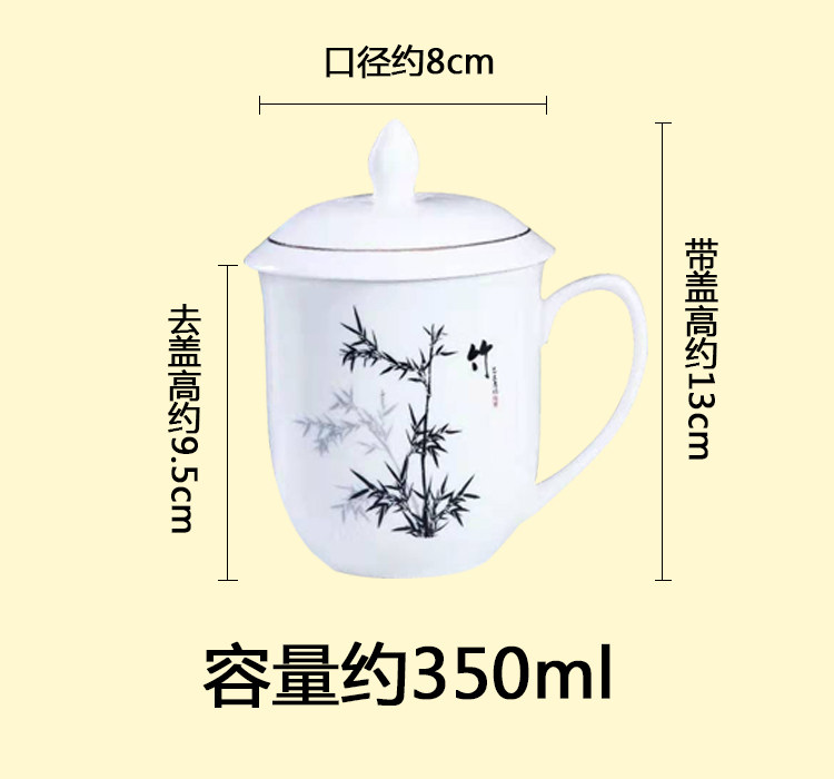【4个装】梅兰竹菊茶杯会议办公室水杯带盖陶瓷杯套装家用耐热杯