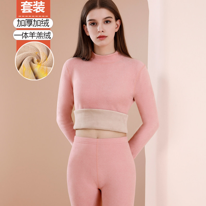 中高领羊羔绒保暖内衣女加厚加绒套装发热德绒秋衣秋裤纯棉中老年
