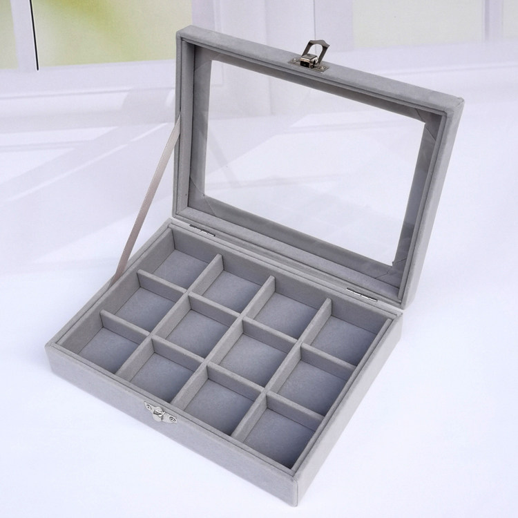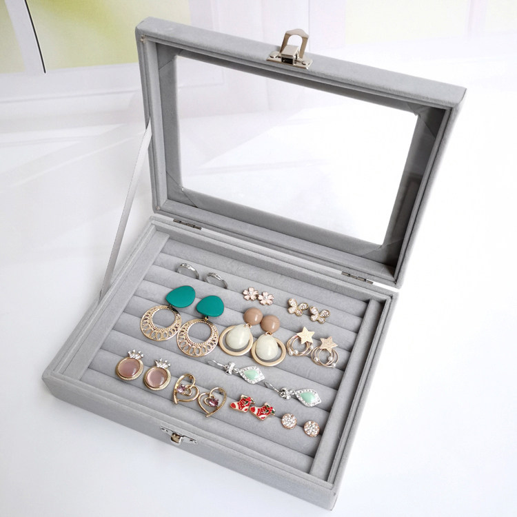 首饰盒戒指耳环耳钉手饰品欧式透明翻盖防尘绒布小容量珠宝收纳盒