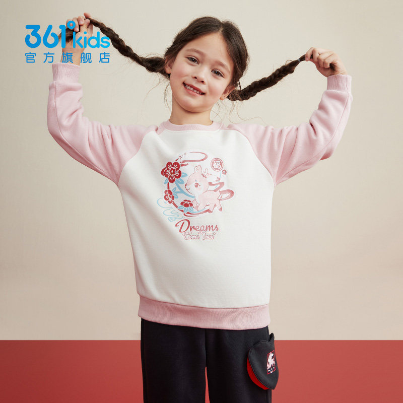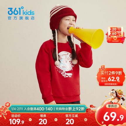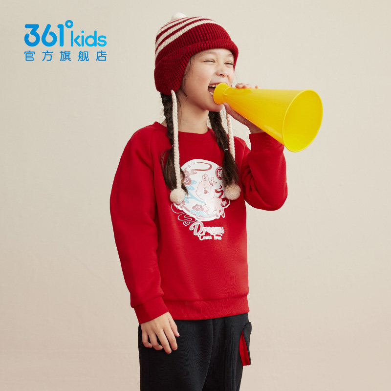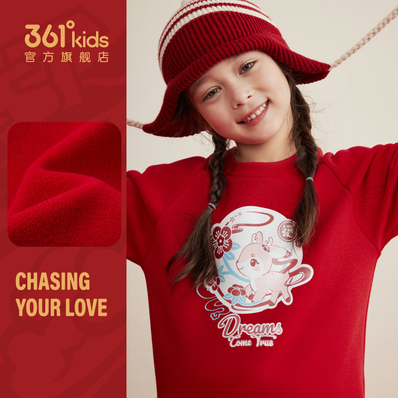 361童装女童加厚卫衣秋冬红色新款新年马年2026圆领运动小童上衣