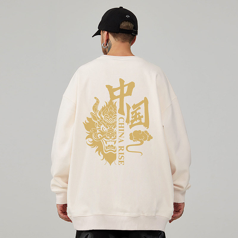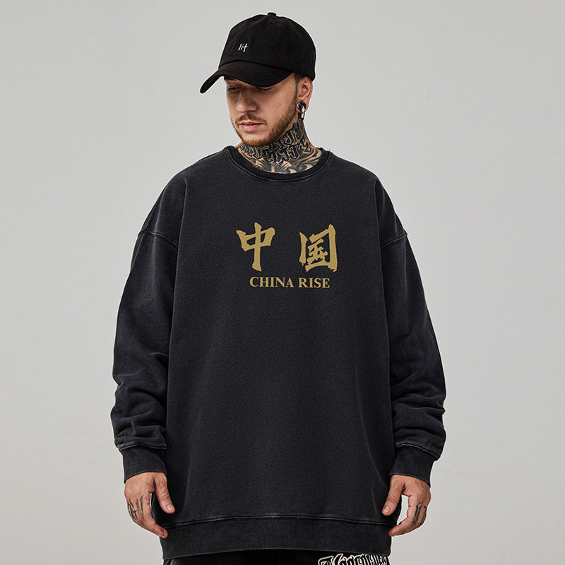 重磅国潮复古潮牌大码卫衣男纯棉水洗做旧高街外套加绒春秋款冬季