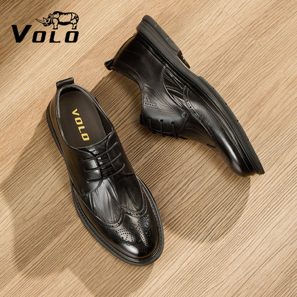 VOLO犀牛男士商务正装皮鞋休闲皮鞋男款布洛克结婚新郎鞋真皮男鞋