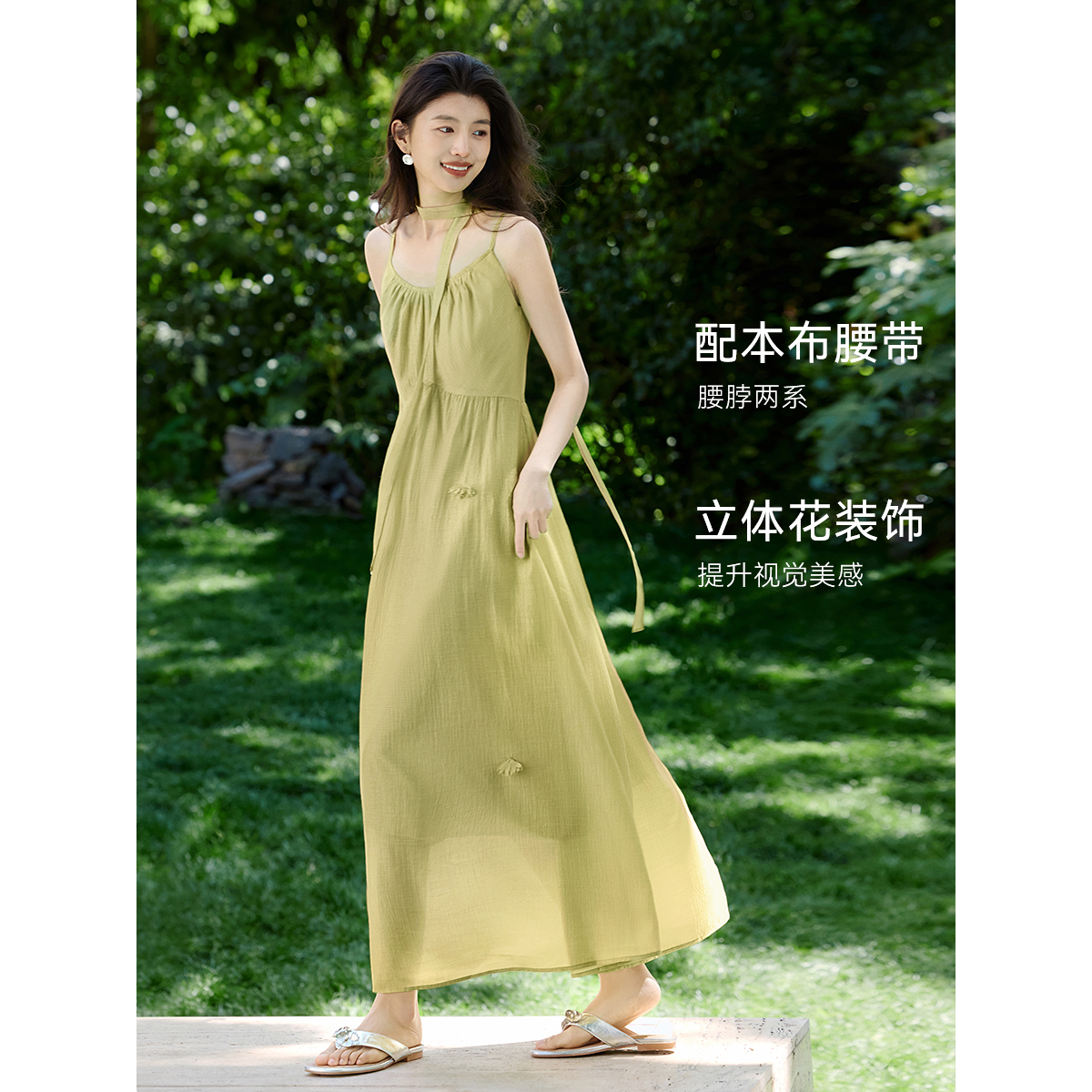 [博主同款]XWI欣未醋酸莱赛尔吊带连衣裙女夏早秋内搭显瘦度假裙