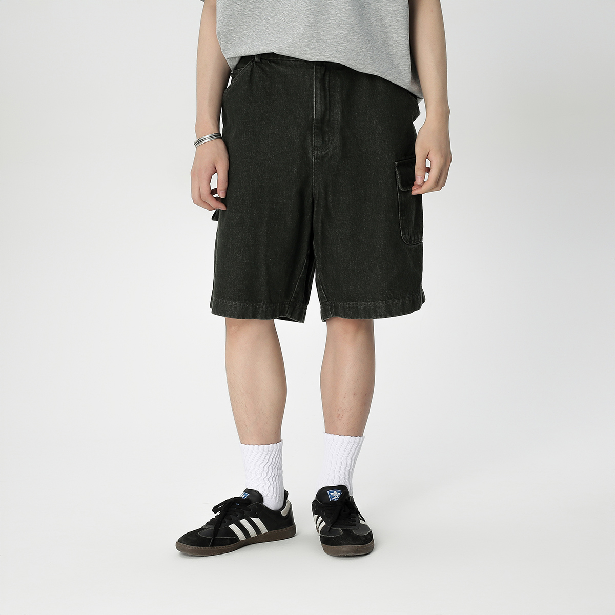 AWT24SS 简约宽松工装直筒五分裤 纯棉水洗彩色牛仔短裤男女