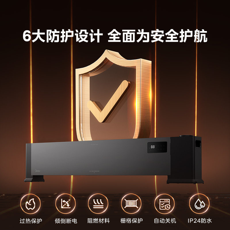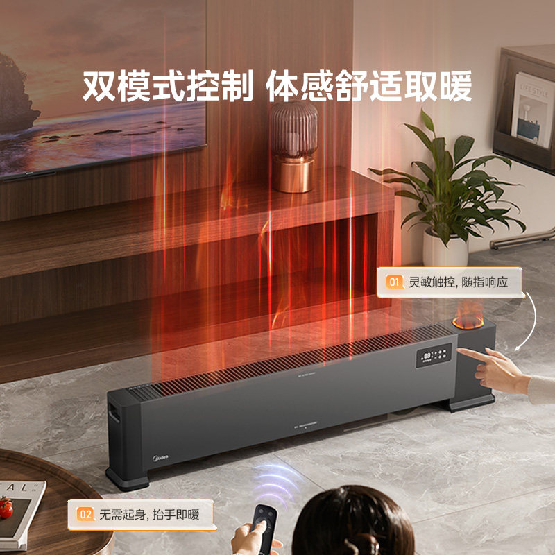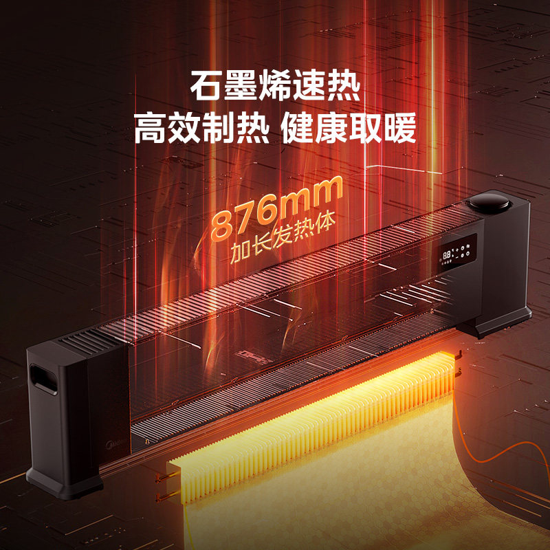 美的踢脚线取暖器石墨烯卧室速热暖风机大面积家用节能省电22AS