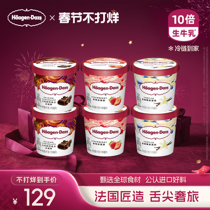 【冷链到家】哈根达斯冰淇淋六杯组合装经典草莓巧克力味冰激凌