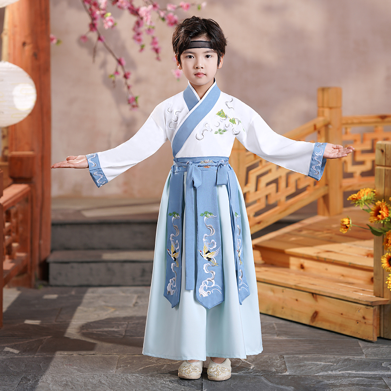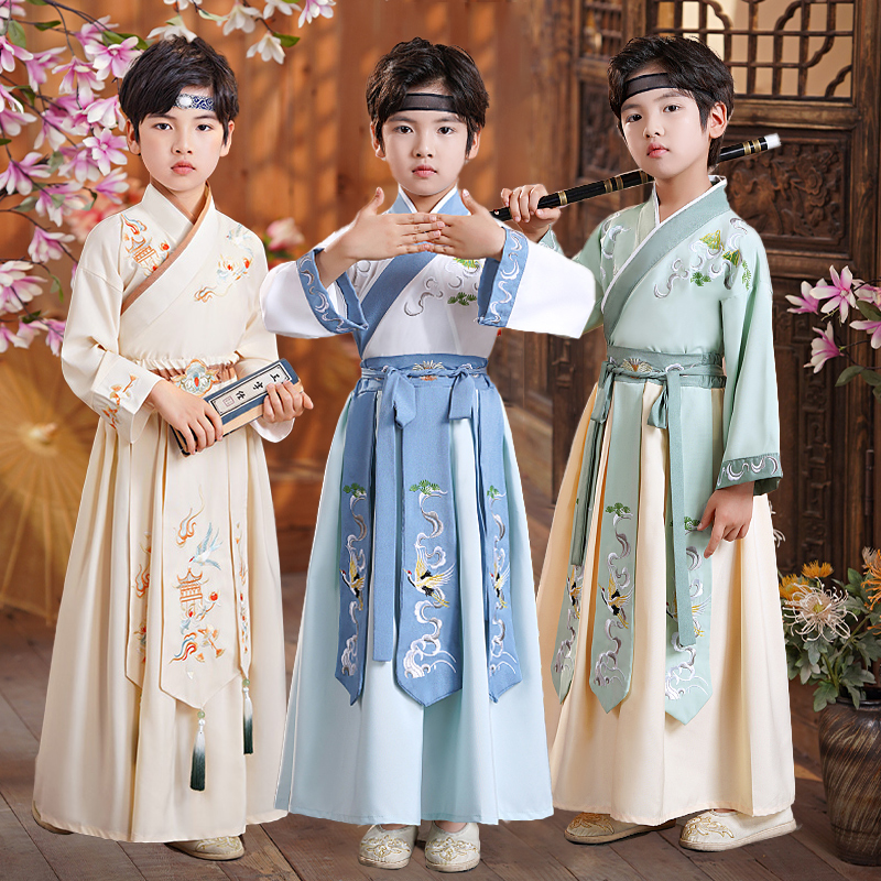 儿童汉服男童古装国学服女小学生中国风唐装书童三字经演出服春秋