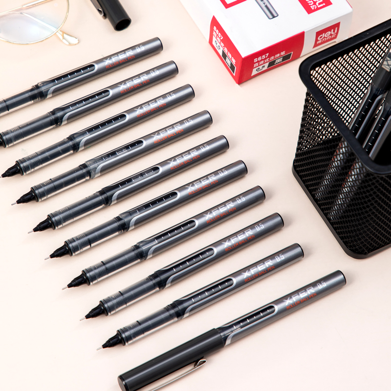 得力直液式走珠笔速干0.5mm黑色中性笔 学生用全针管碳素笔签字笔黑水笔考试专用笔 水性笔