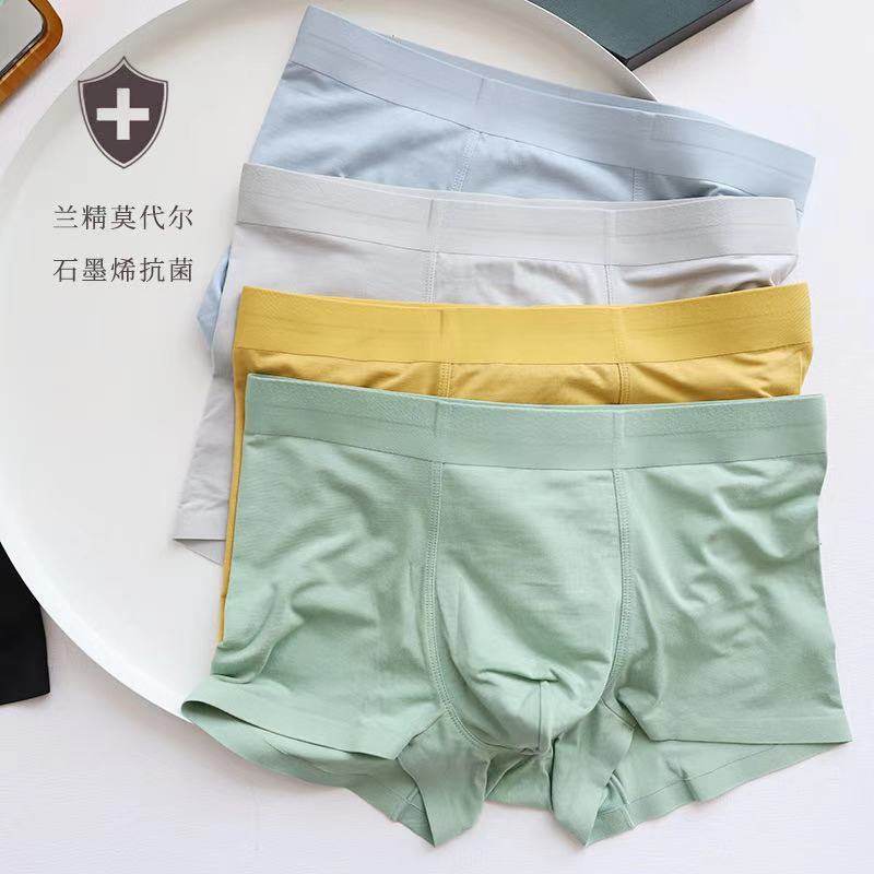 3条抗菌石墨烯80支兰精装男士内裤纯棉档超柔纯色无痕莫代尔姜黄