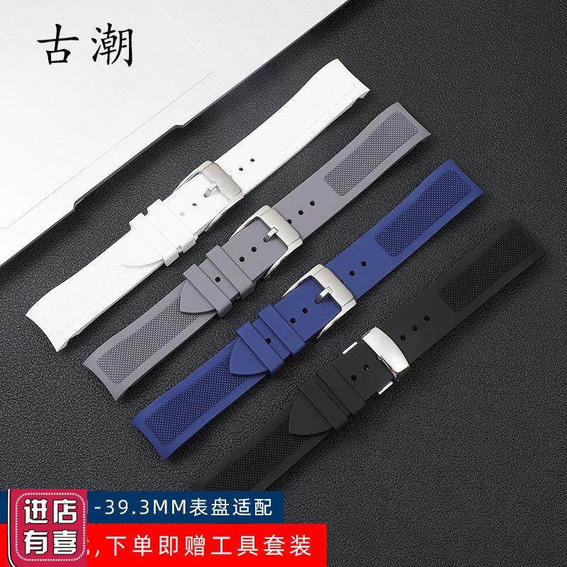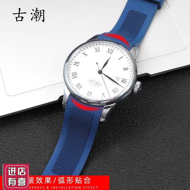 适配1853天梭力洛克T41/T006橡胶表带原装弧口硅U胶手表带蓝色表