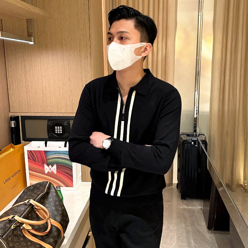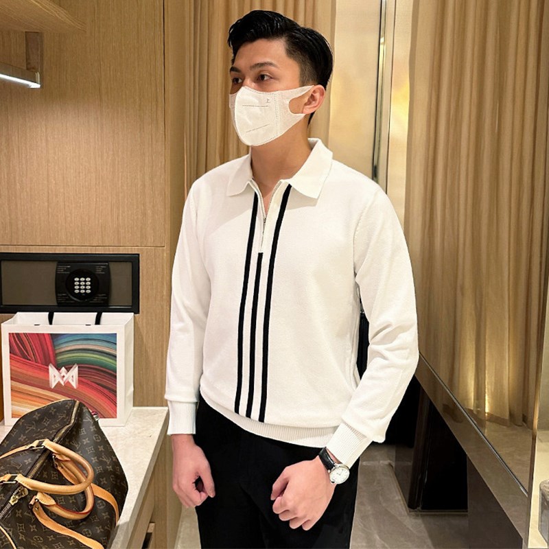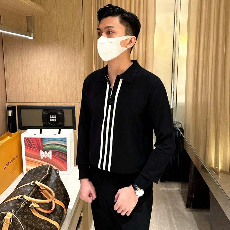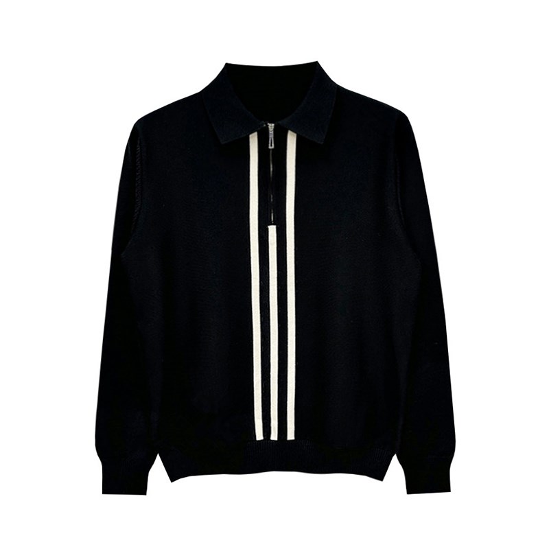 轻熟简约儒雅青年修身翻领针织上衣时尚高级休闲条纹长袖polo衫男